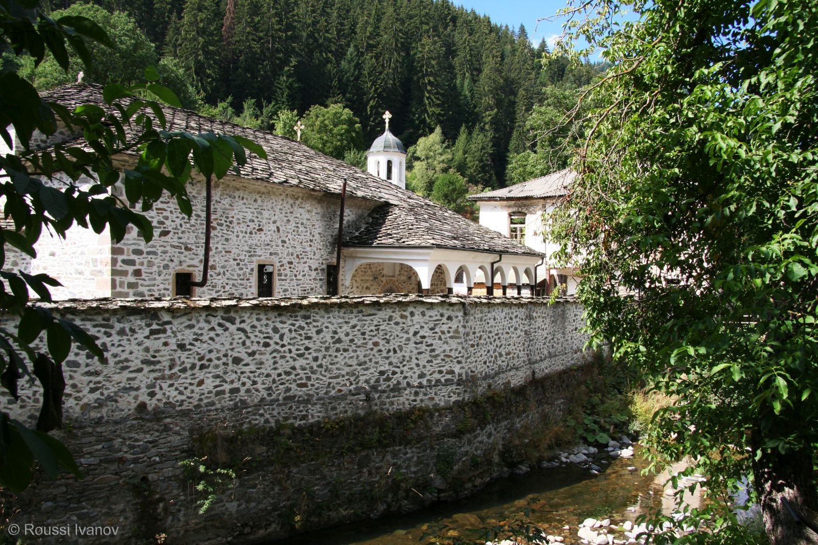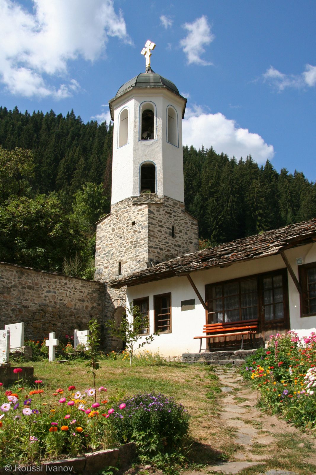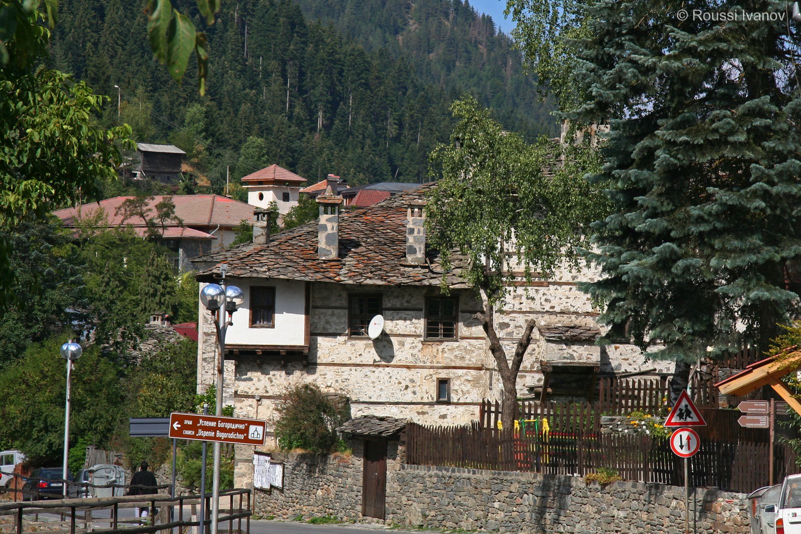 (The Church of Our Lady and the St. Panteleimonas school, Shiroka Laka, Bulgaria)