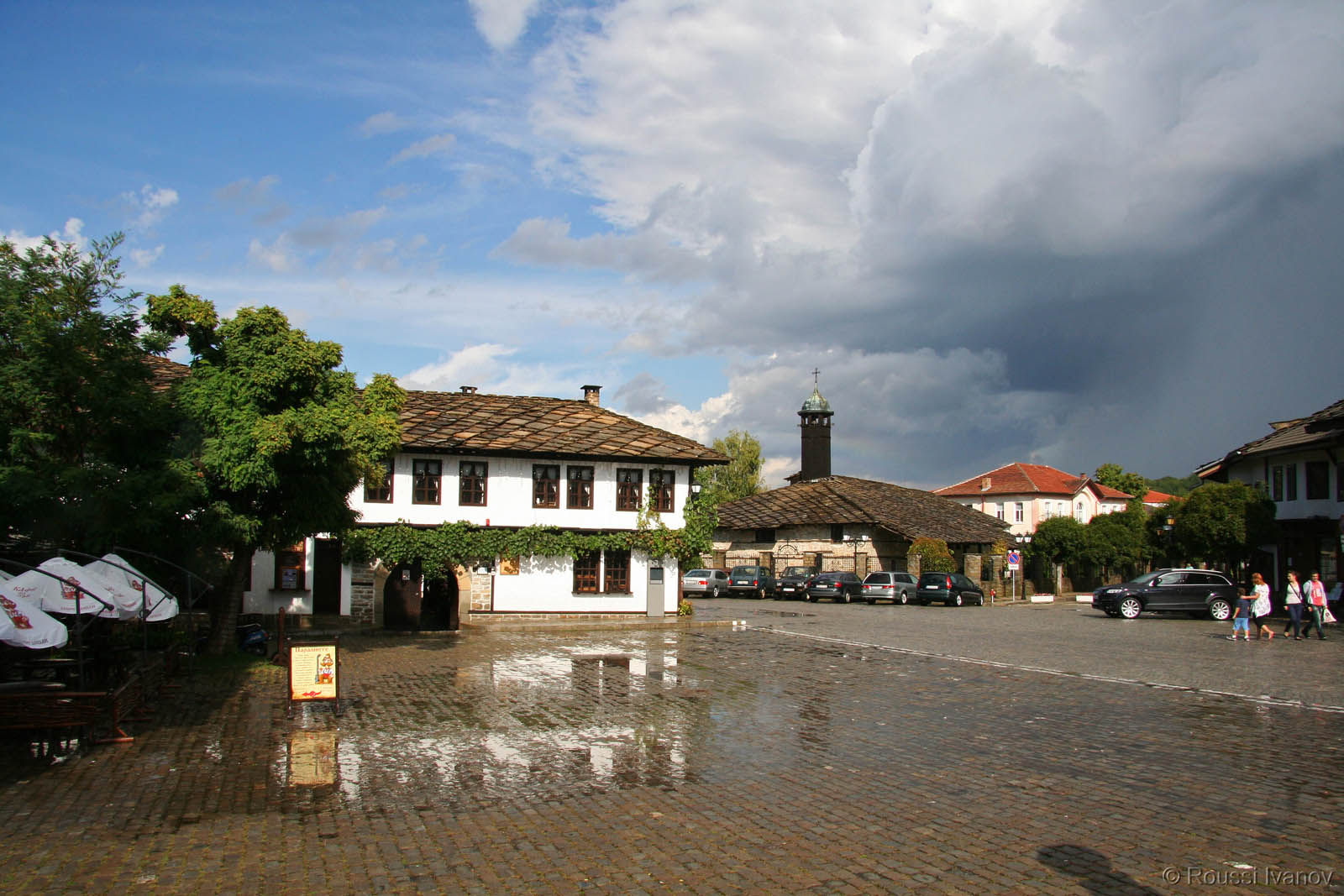 Трявна - площада до часовниковата кула след буря