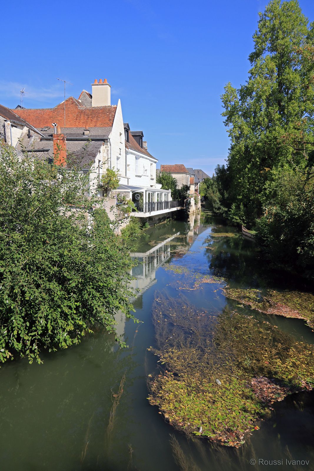 Замъкът Льош и къщи покрай р. Ендр в Льош, долината на р. Лоара, Франция
