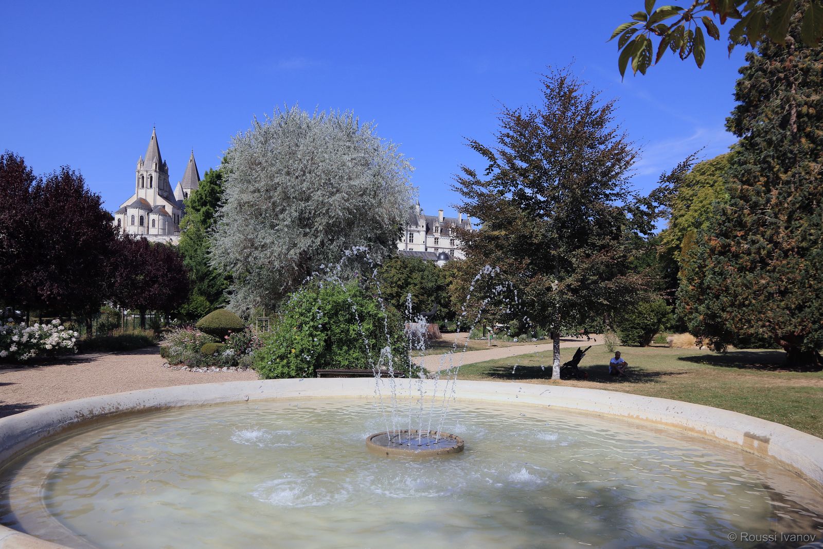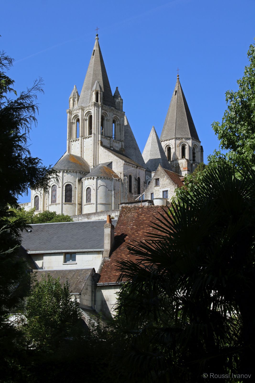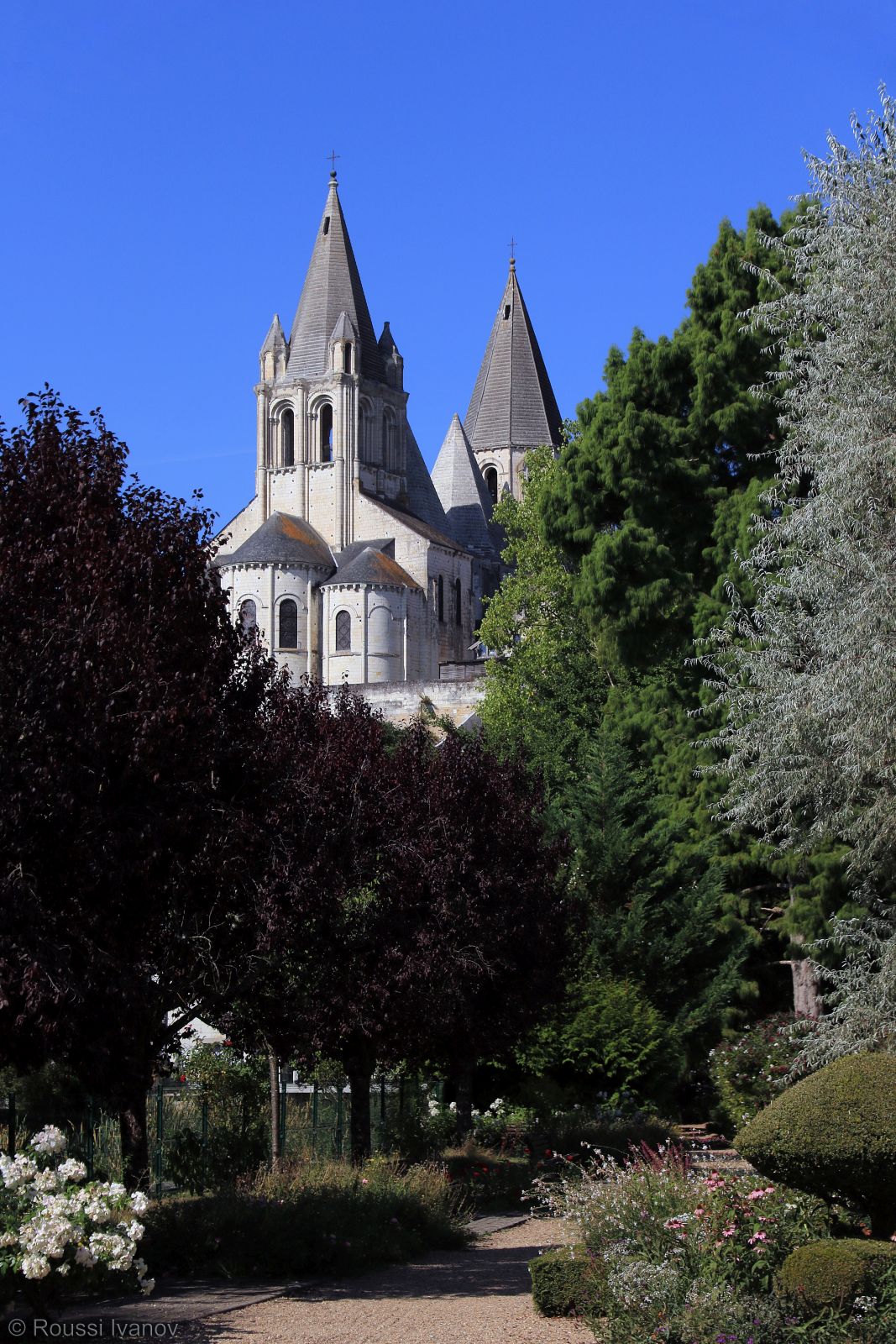 (Church of Saint-Ours in Château de Loches - view from the Loches public gardens, Loire Valley, France)