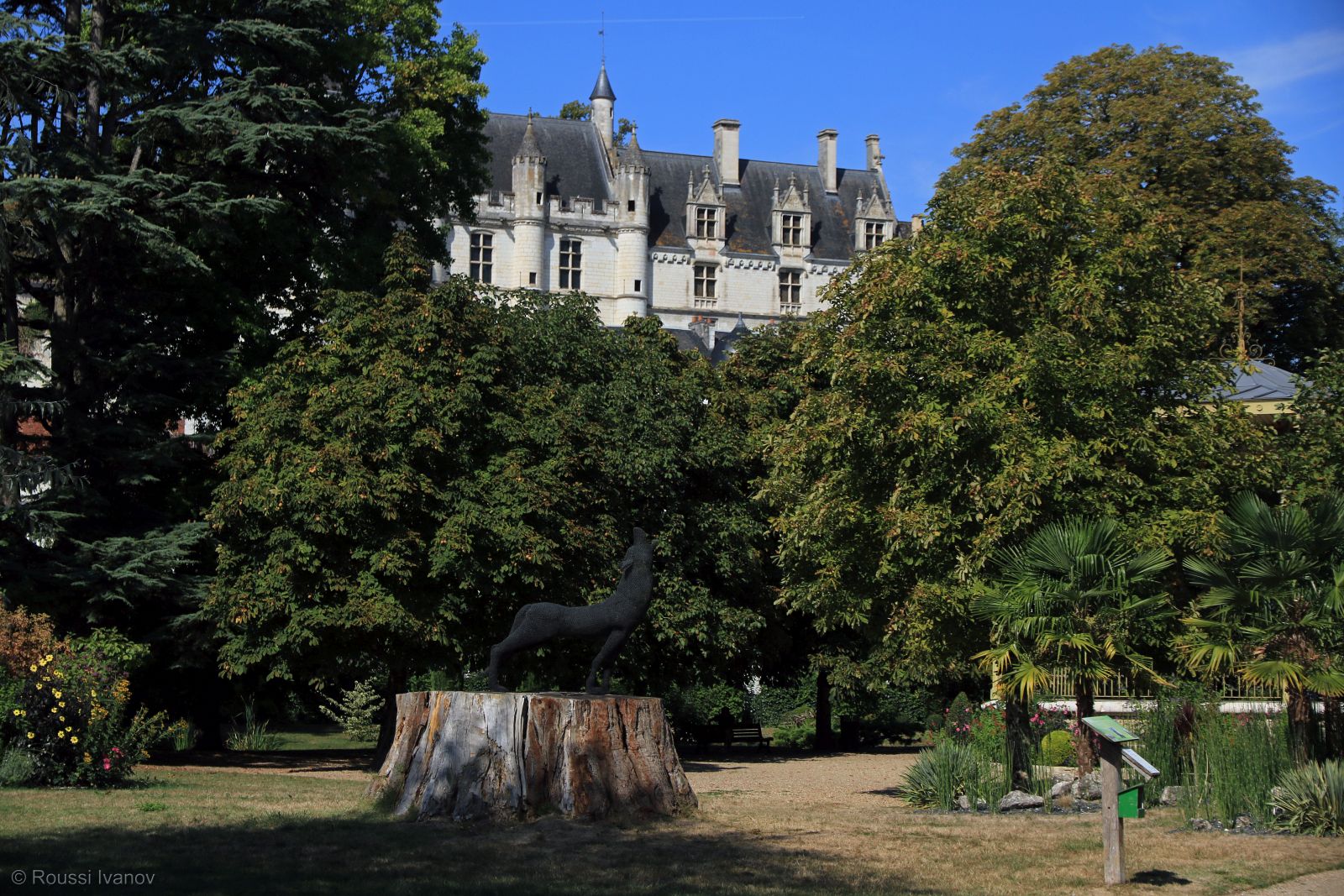 Замъкът Льош - поглед от градския парк на Льош, долината на р. Лоара, Франция