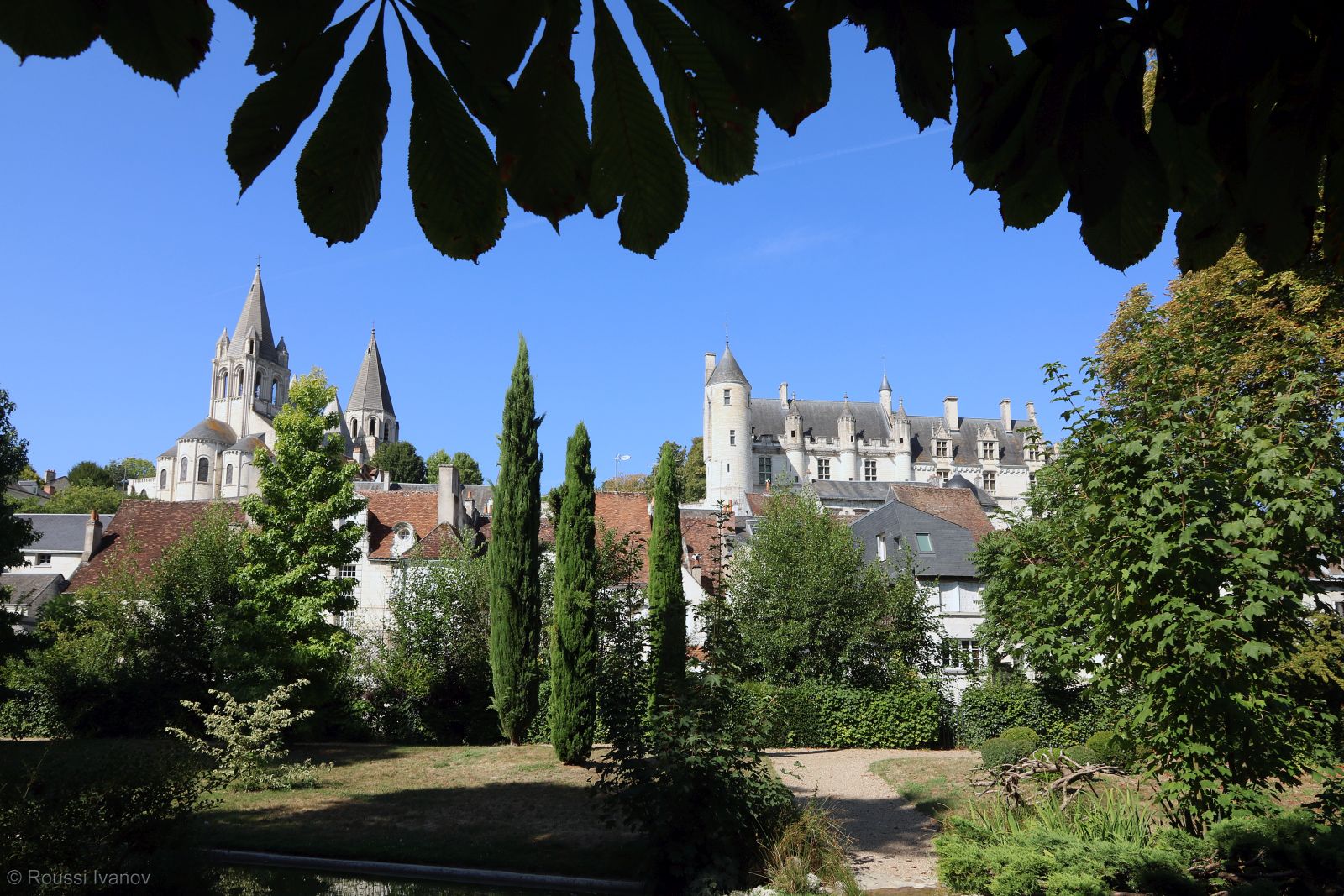 (Château de Loches and adjacent Church of Saint-Ours - view from the Loches public gardens, Loire Valley, France)