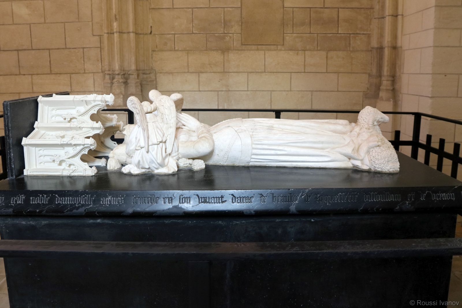 Саркофаг на Агнес Сорел (1422-50) - първата официална любовница на френски крал - Шарл VII в църквата Св. Урс в замъка Льош, долината на р. Лоара, Франция