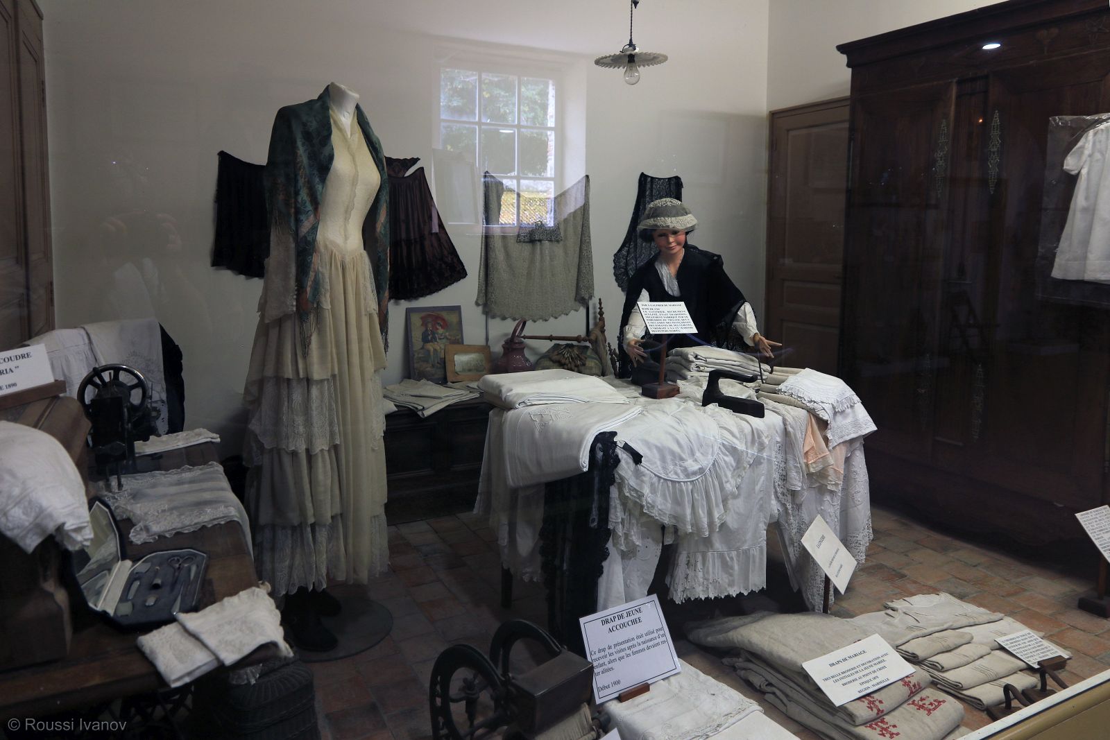 (Wedding dresses in the marriage museum, Château de Villesavin, Loire Valley, France)