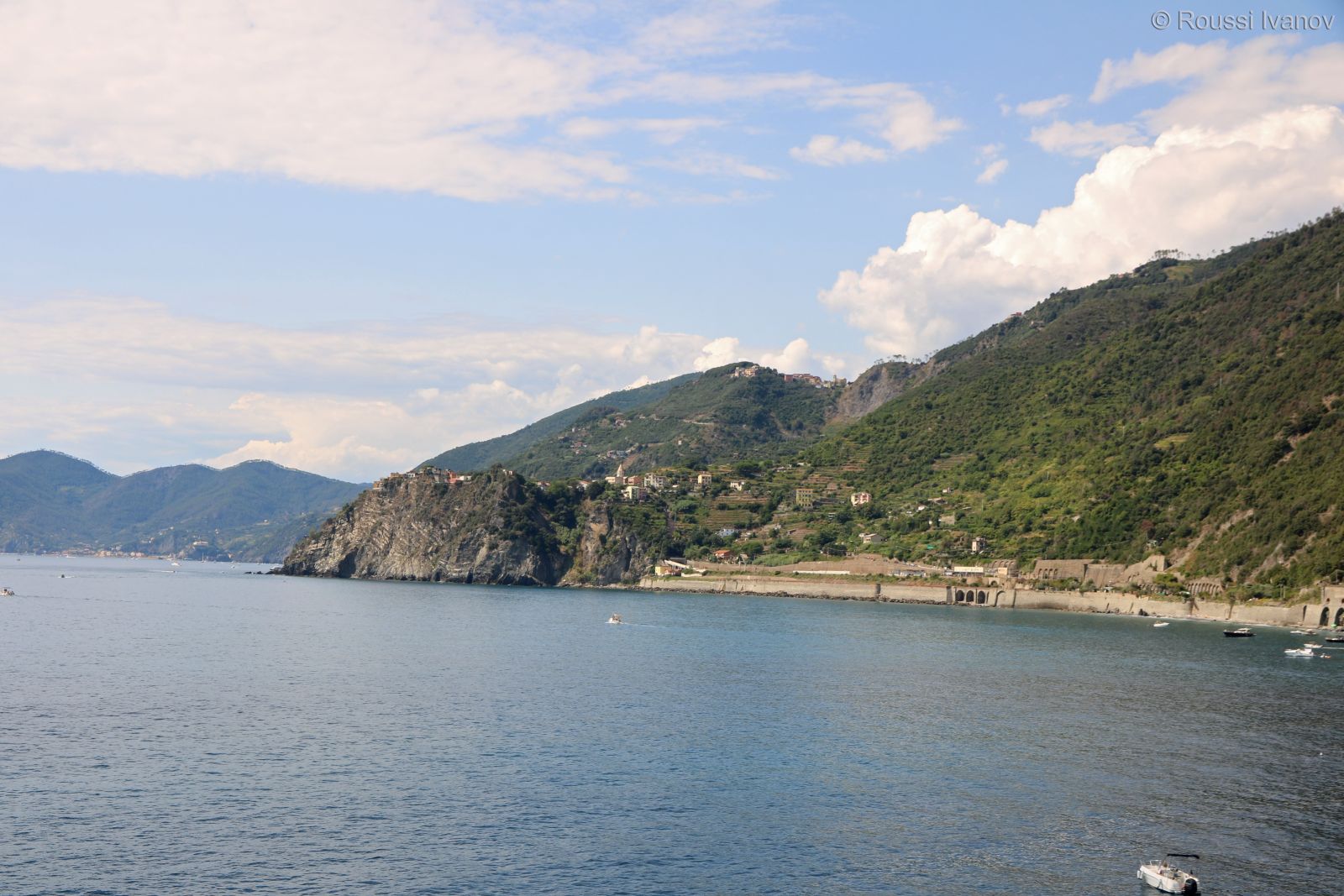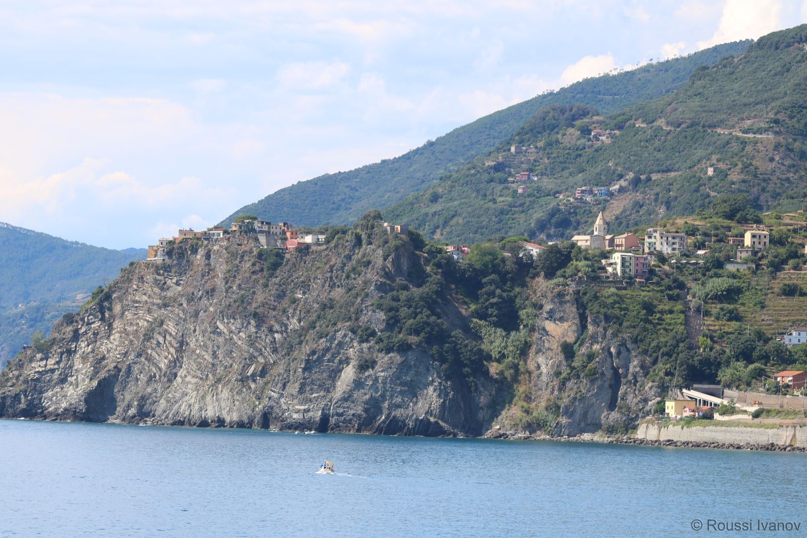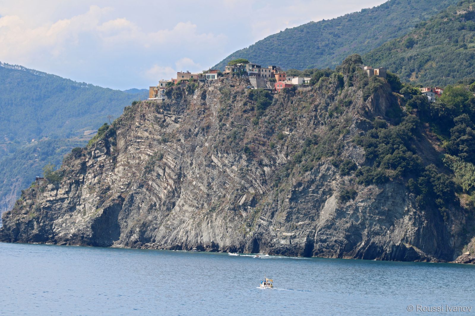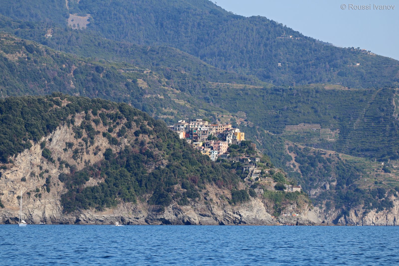 Корнилия - поглед от корабчето за Порто Венере, Лигурия, Италия (View of Corniglia from the ferry to Porto Venere, Cinque Terre, Liguria, Italy)