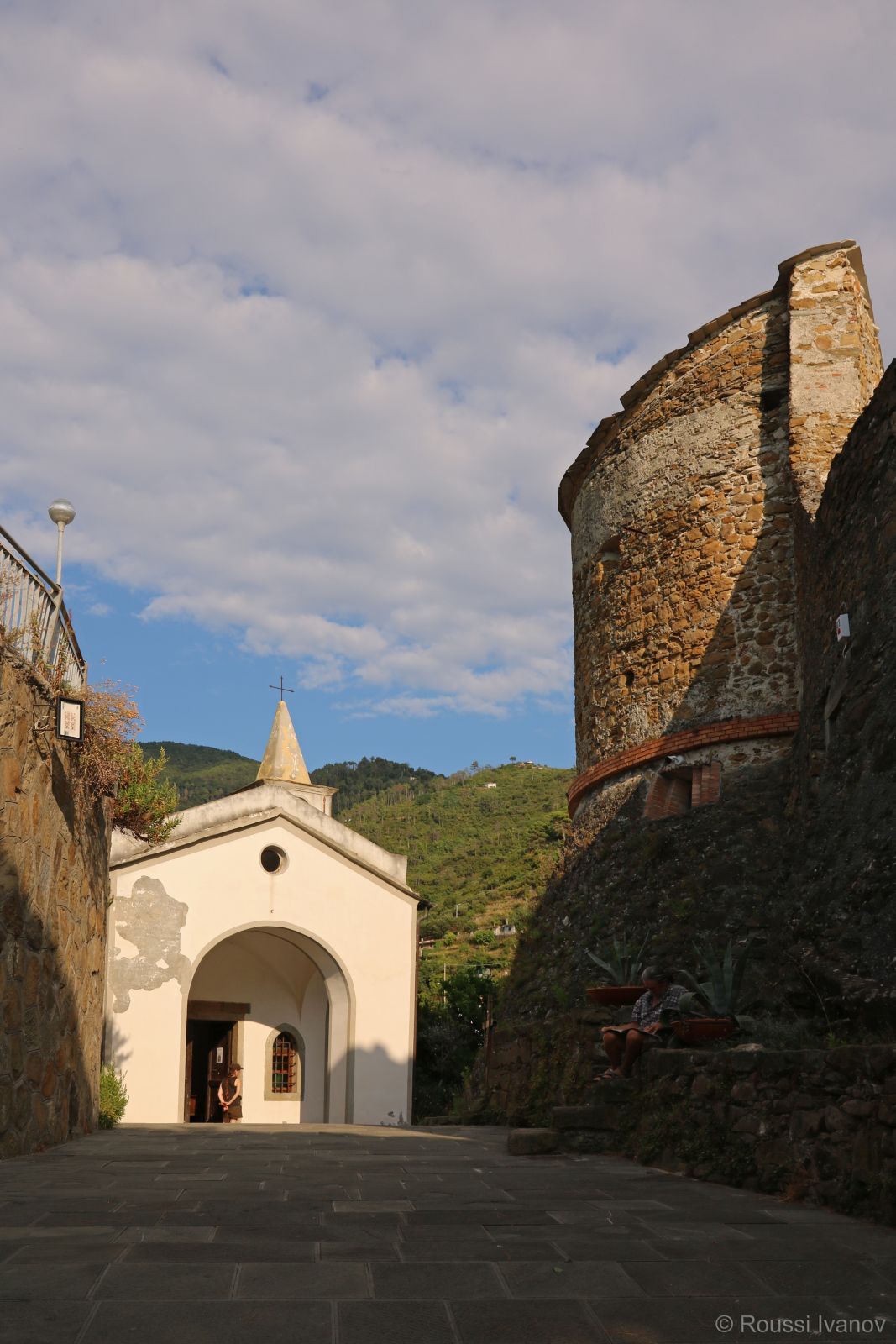 Замъкът Риомаджоре и църквата Сан Роко, Риомаджоре, Лигурия, Италия