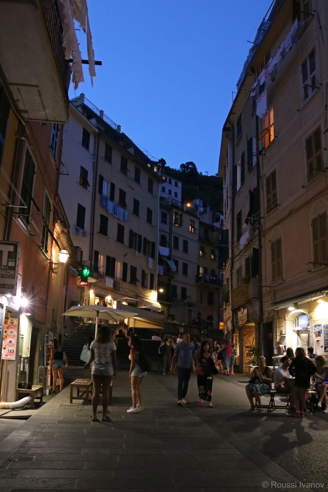 Виа Коломбо през нощта, Риомаджоре, Лигурия, Италия
