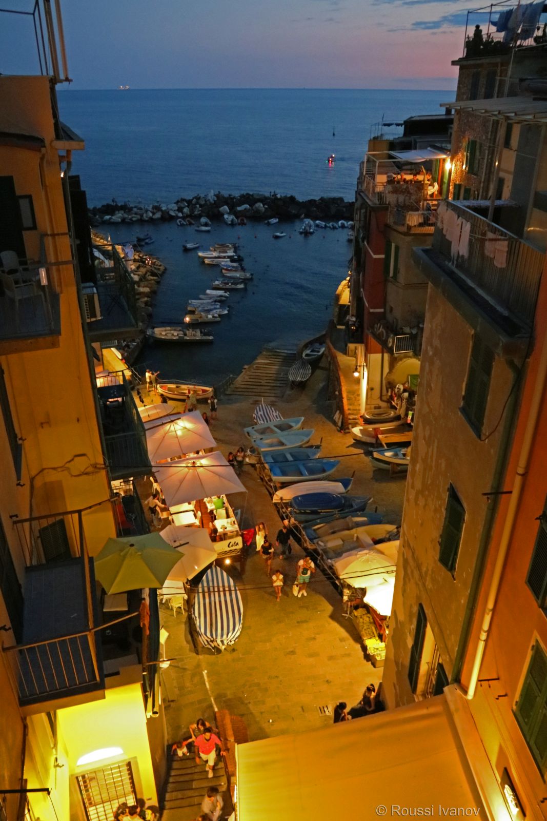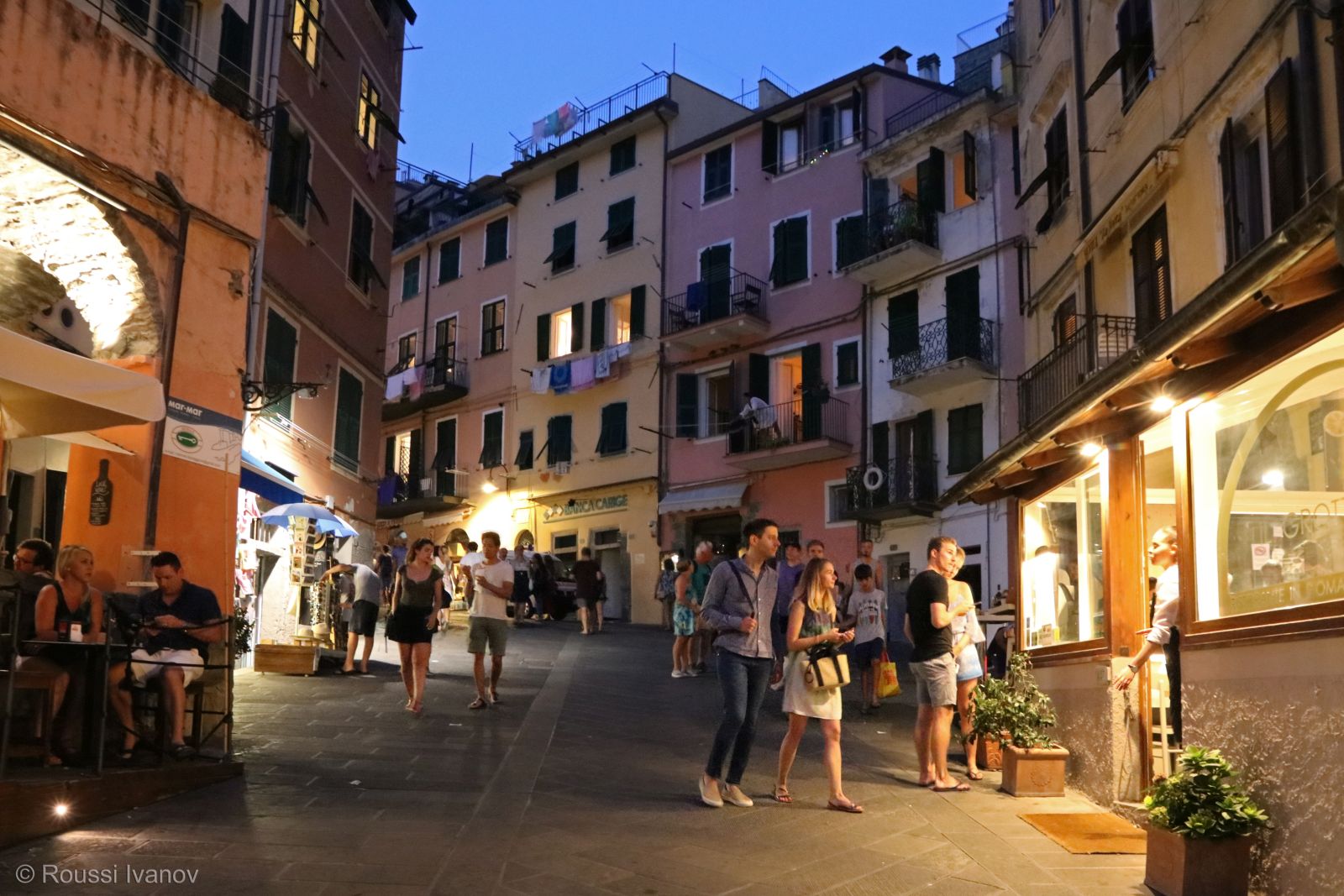 (Piazza Vignaioli at night, Riomaggiore, Cinque Terre, Liguria, Italy)