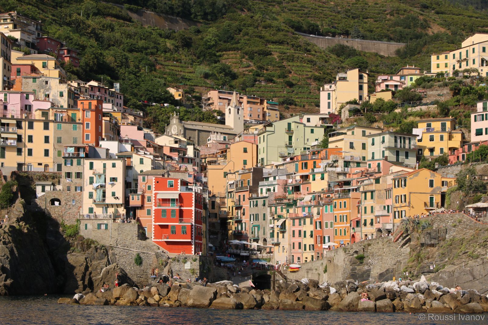 Риомаджоре - изглед от корабчето за Порто Венере, Лигурия, Италия