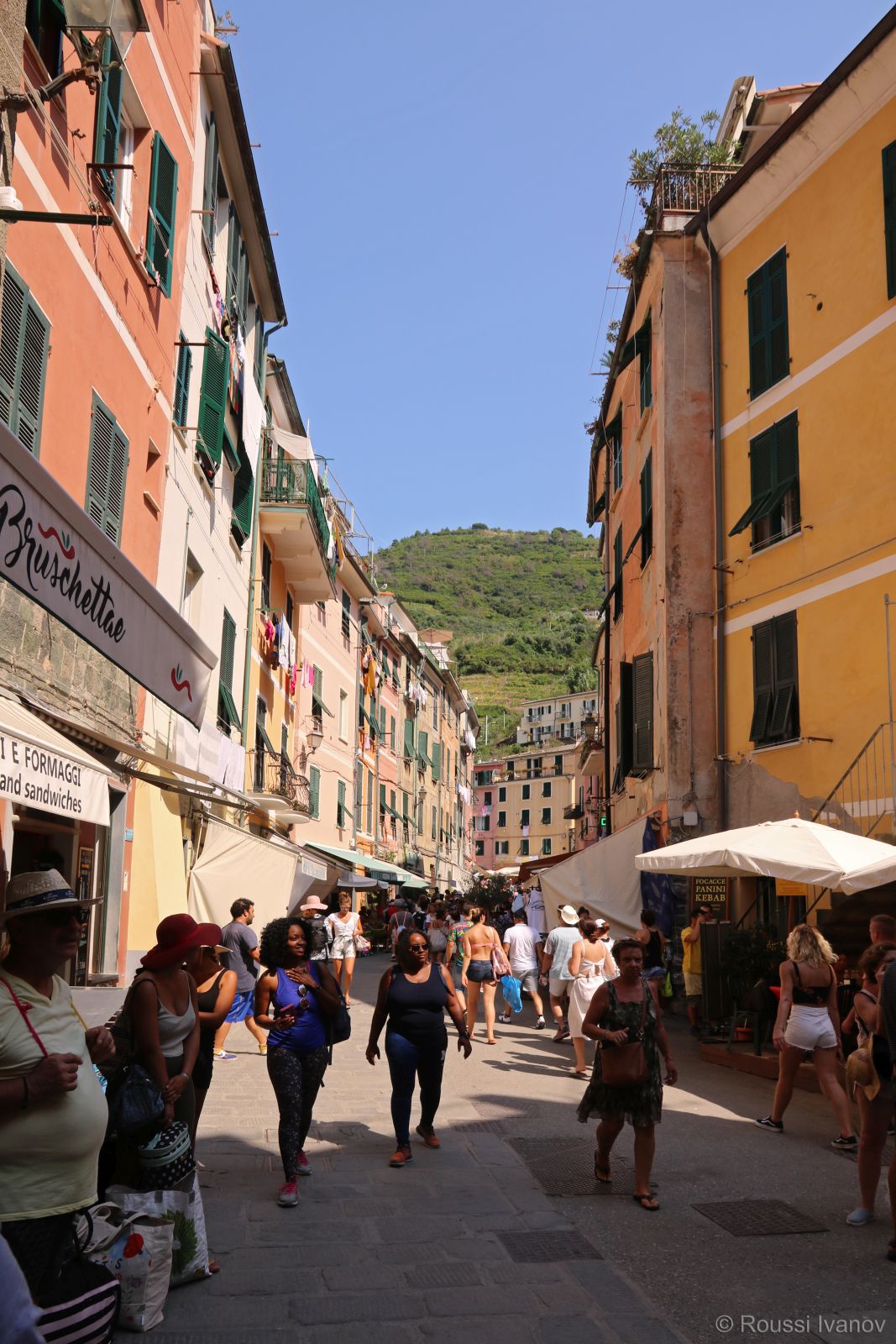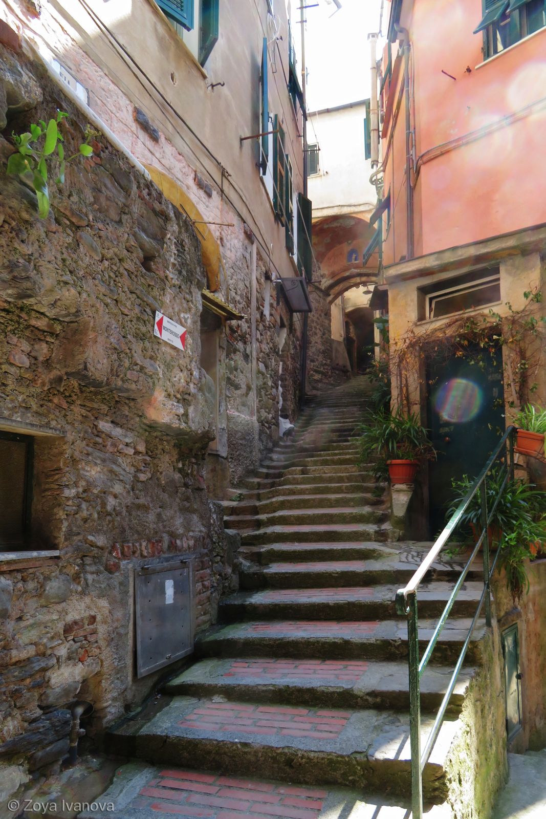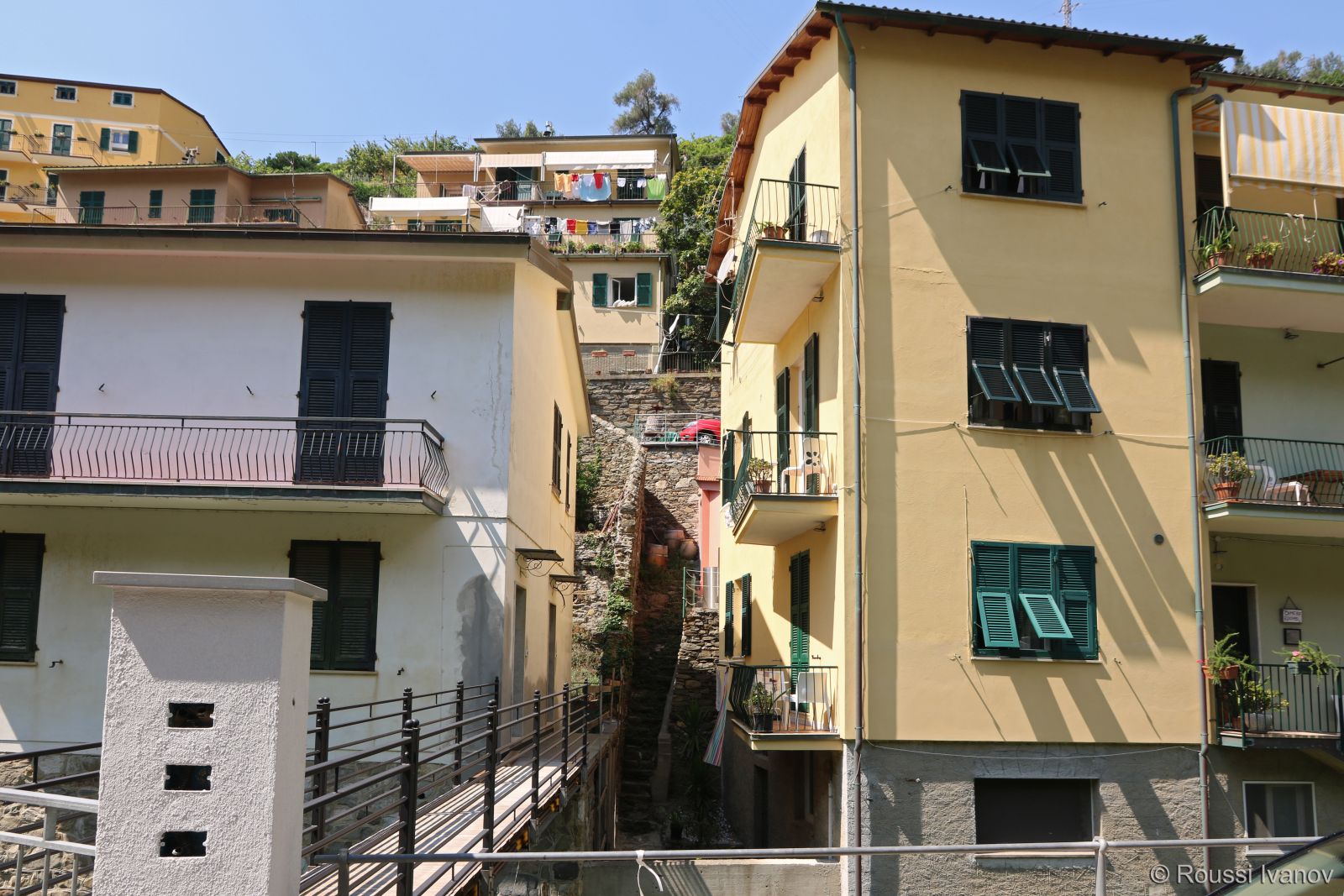 Виа Рома и ж.п. гарата във Вернаца, Лигурия, Италия