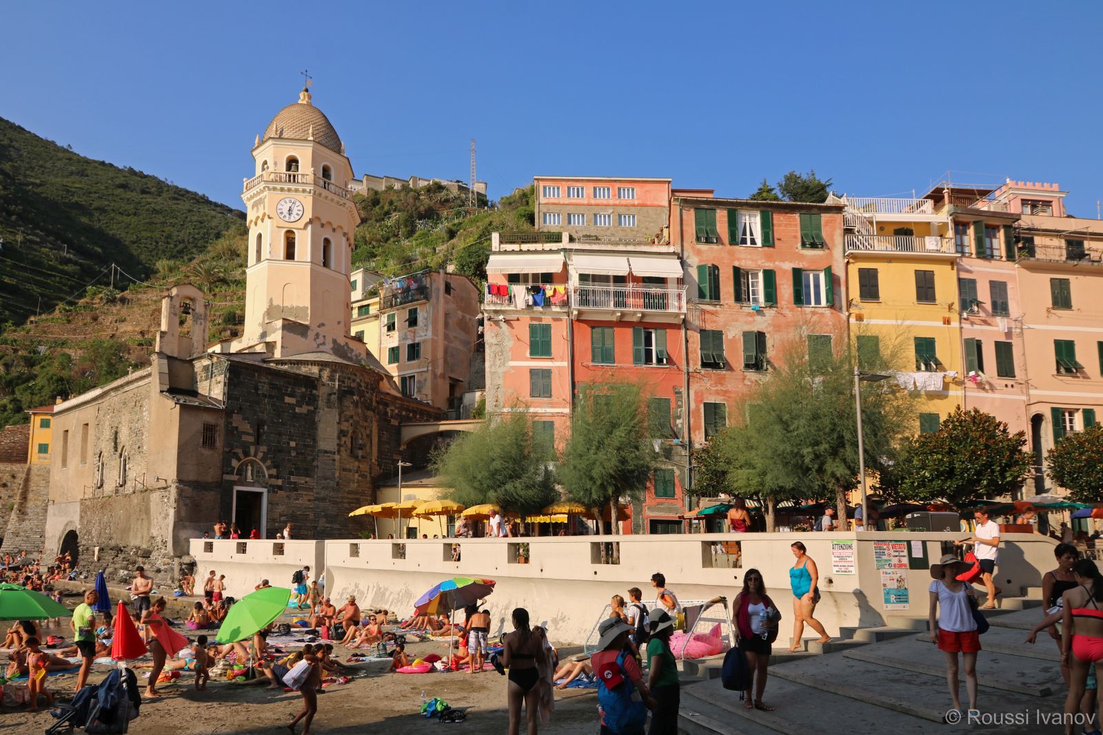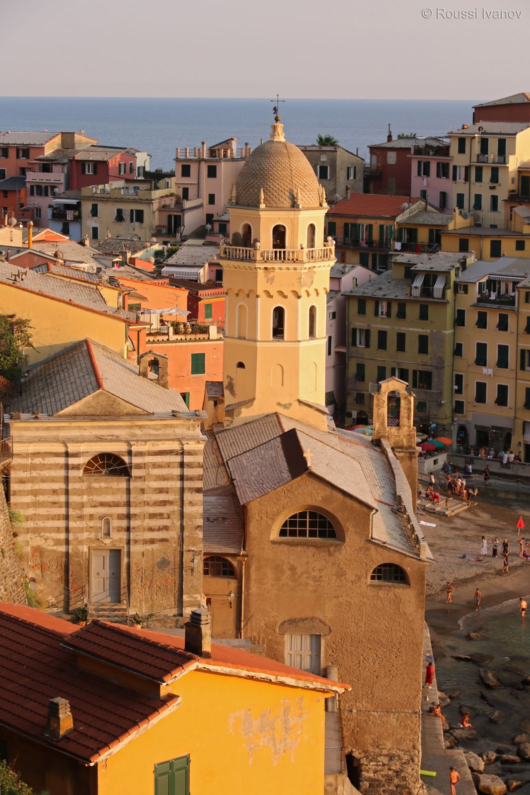 (Vernazza's beach - view from Via Agostino del Santo, Cinque Terre, Liguria, Italy)