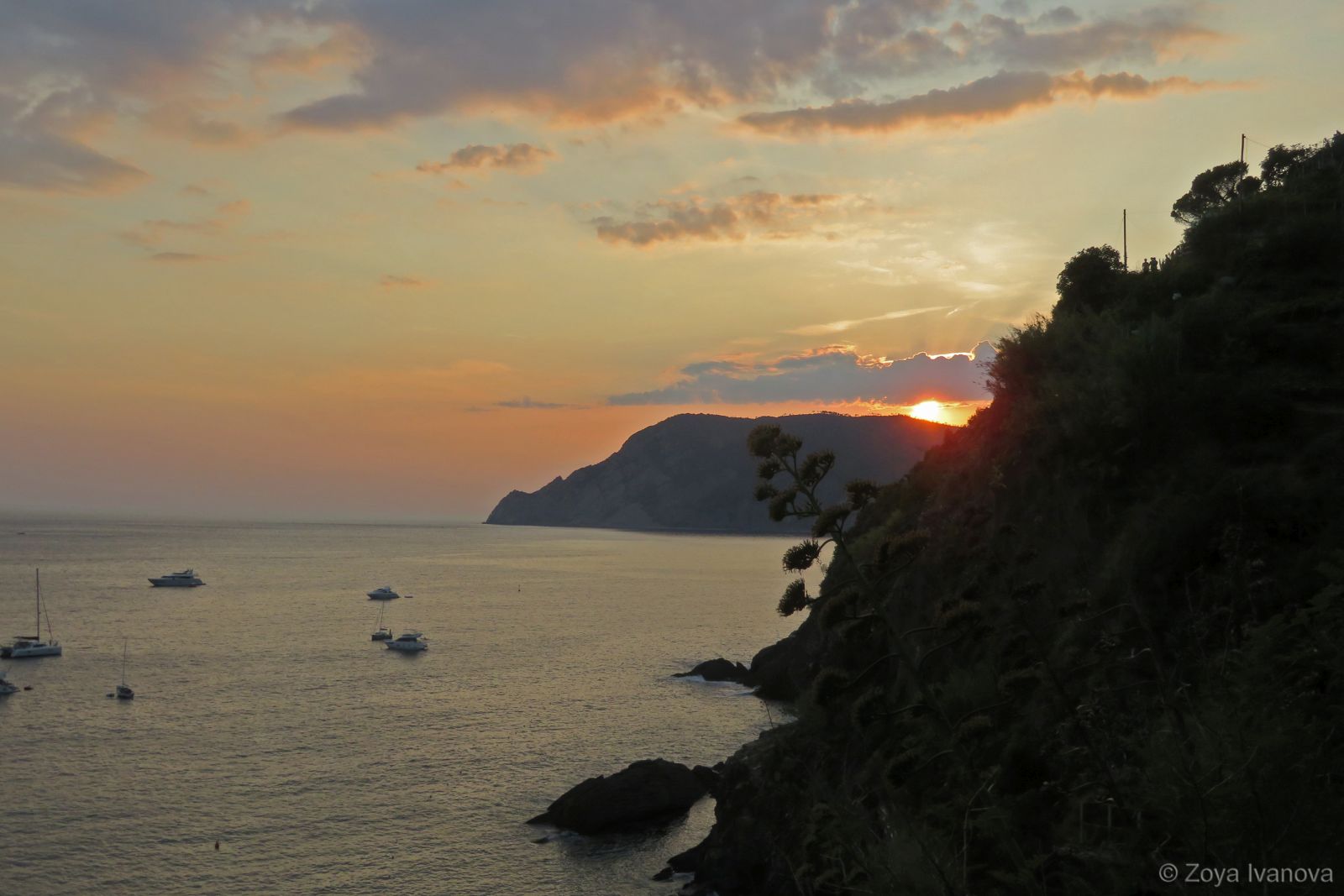 Залез над залива на Вернаца, Лигурия, Италия