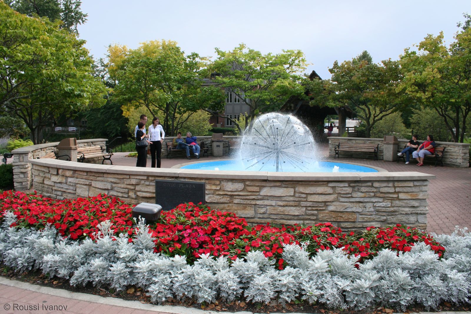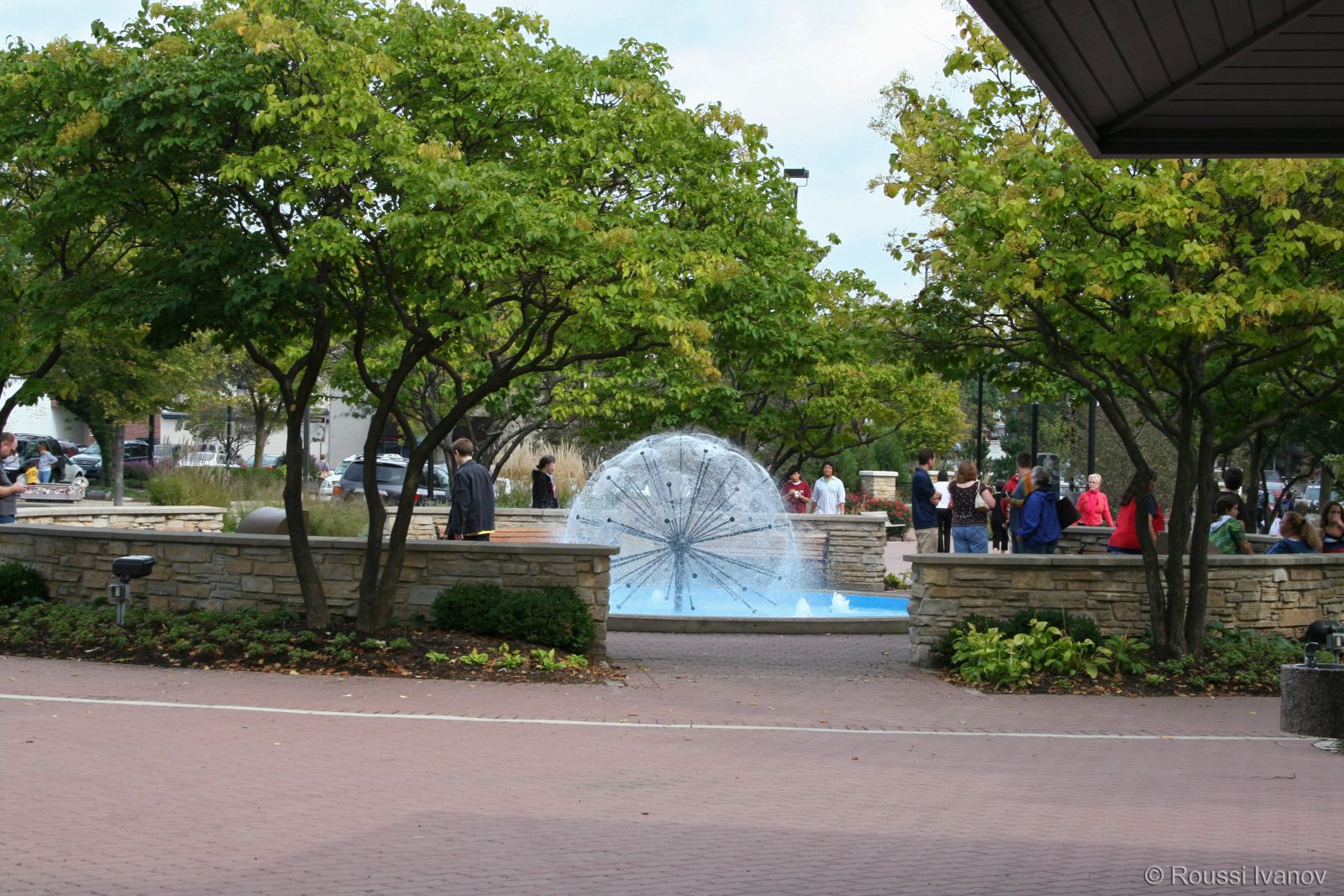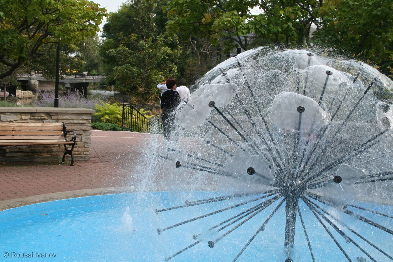 Фонтанът "Дендълайн" (Глухарче) в крайречния парк на Нейпървил, Илинойс (Dandelion fountain in Naperville Riverwalk park, IL)