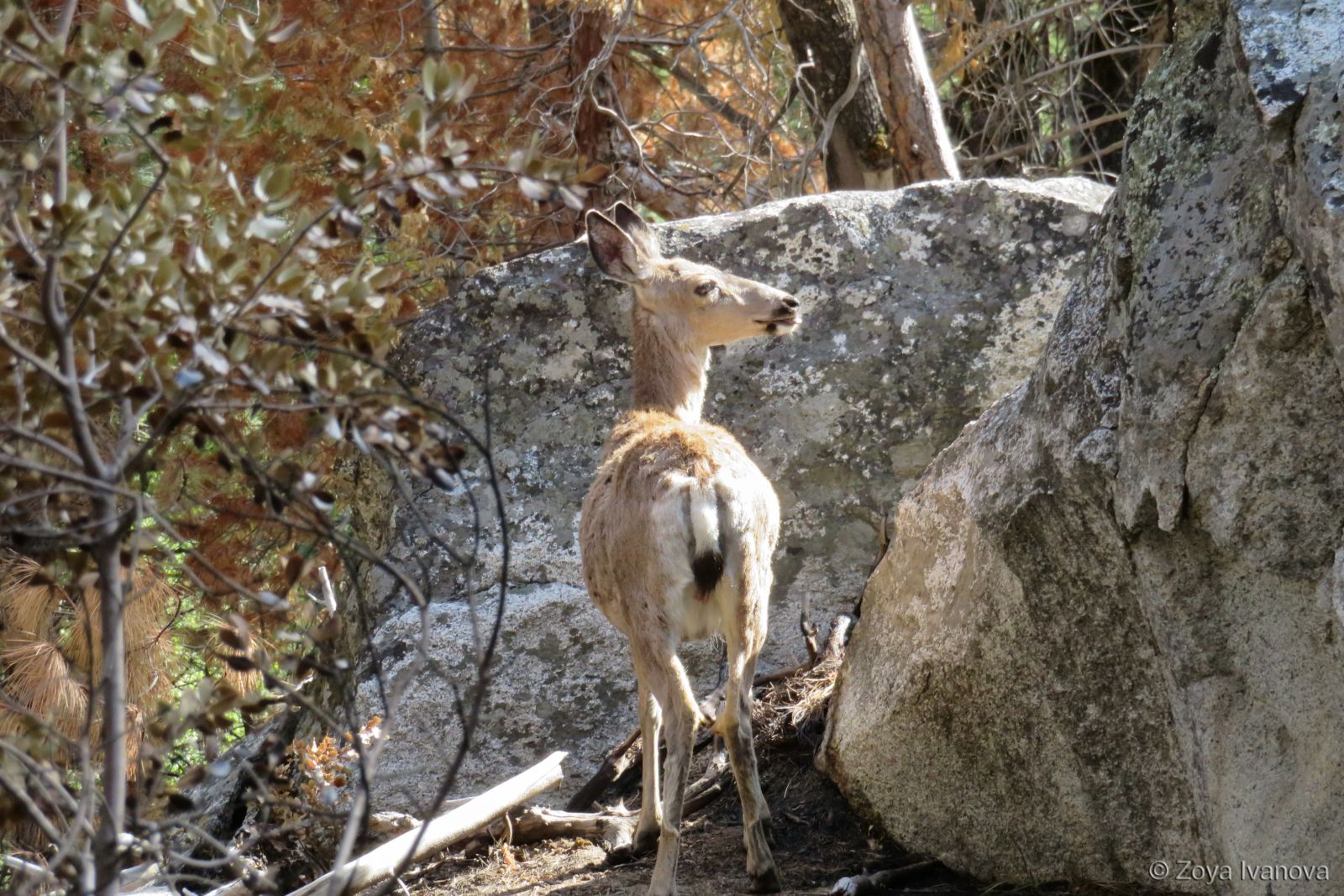 (Female mule deer at the and of the Mist Falls trail, Kings Canyon NP)