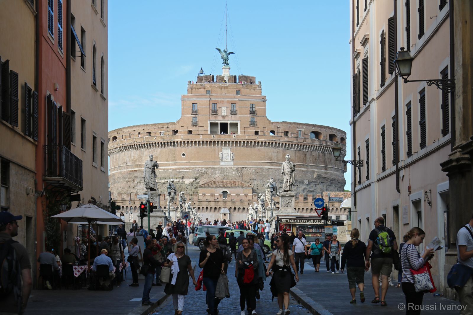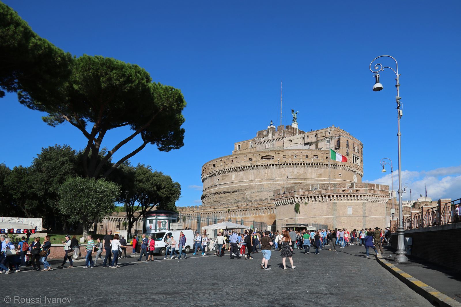 Излизаме от метростанцията и се отправяме към замъка Св. Анджело (итал. Castel Sant’Angelo). Огромна сграда, която изглежда като крепост, но любопитното в нейната история е, че е започната да се строи като гробница, известна като Мавзолеят на Адриан.